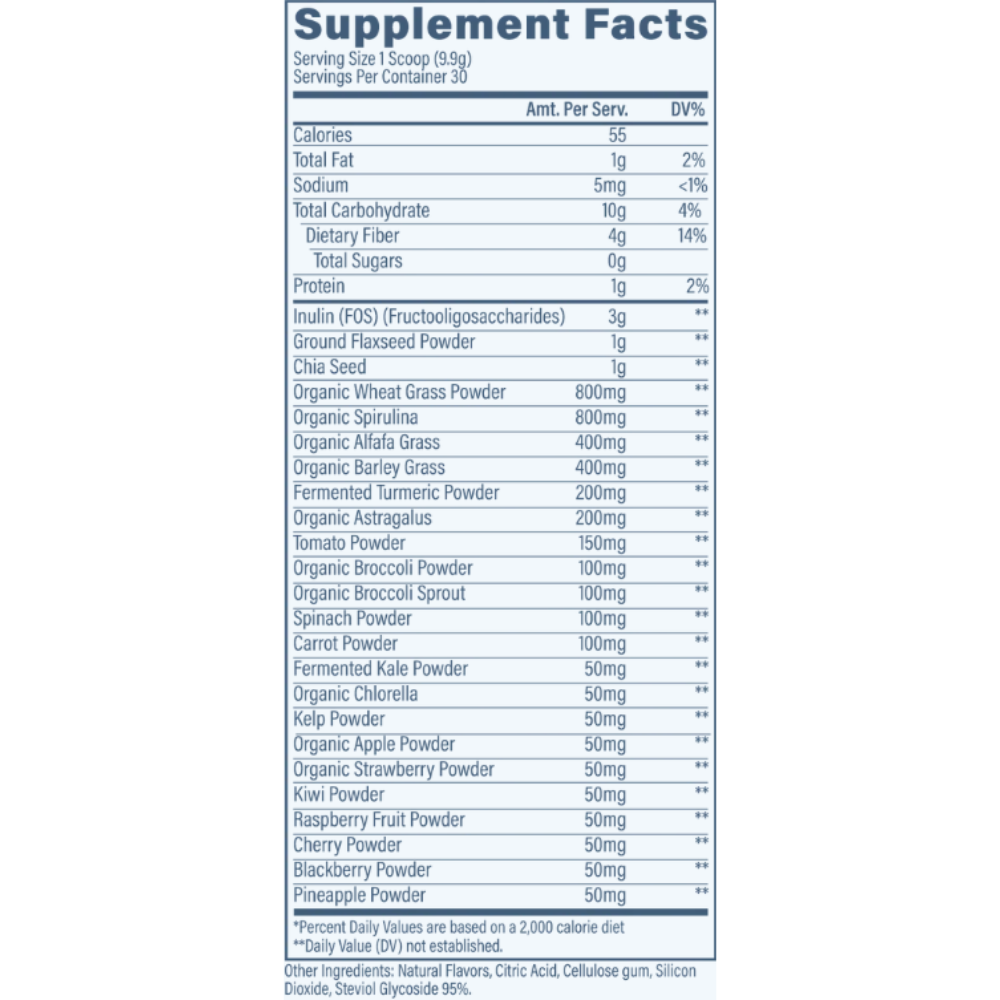 Përzierja jonë e Zarzavateve përbëhet nga një shumëllojshmëri frutash dhe perimesh për të mbështetur antioksidantët dhe detoksifikimin.*